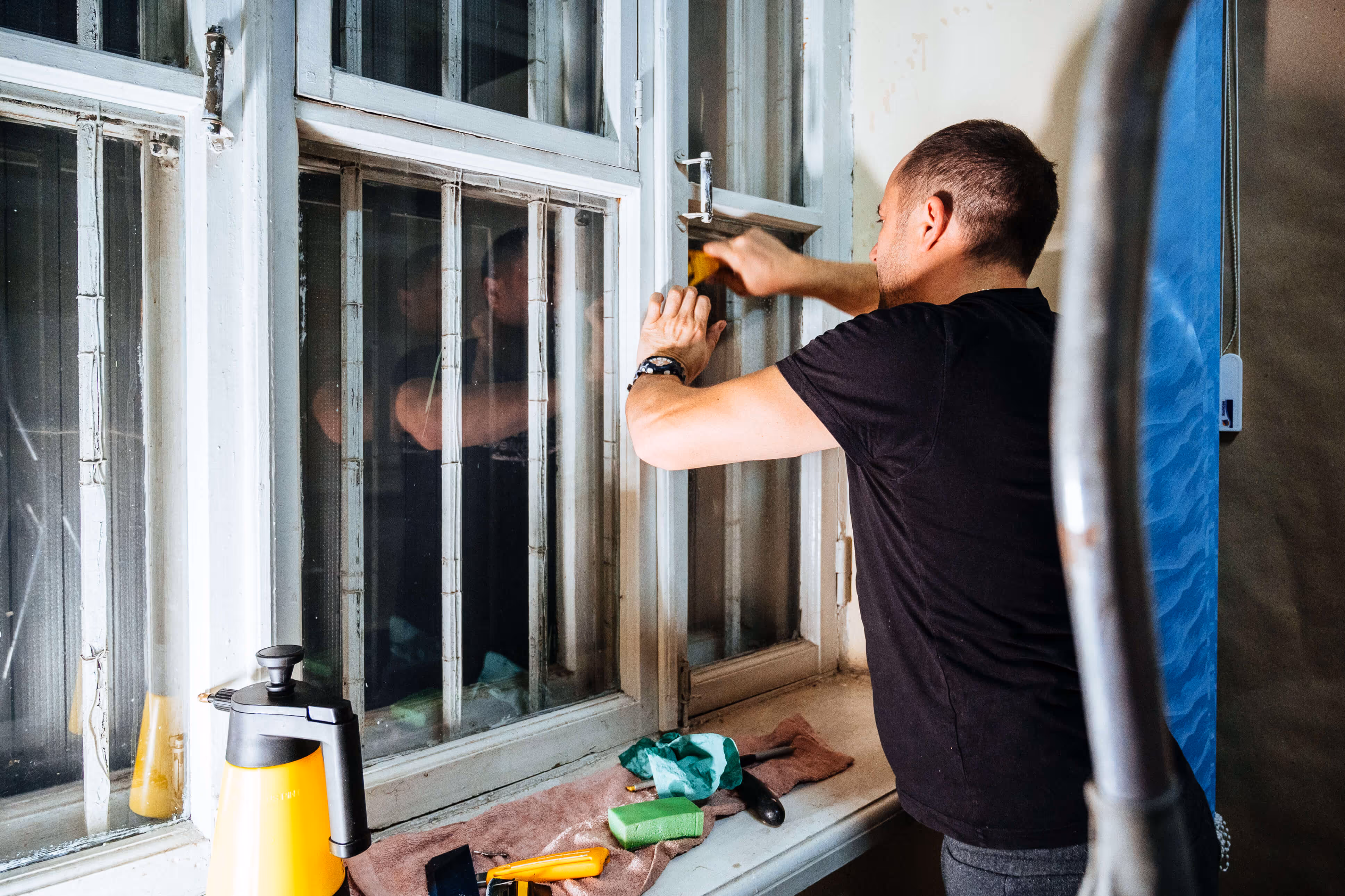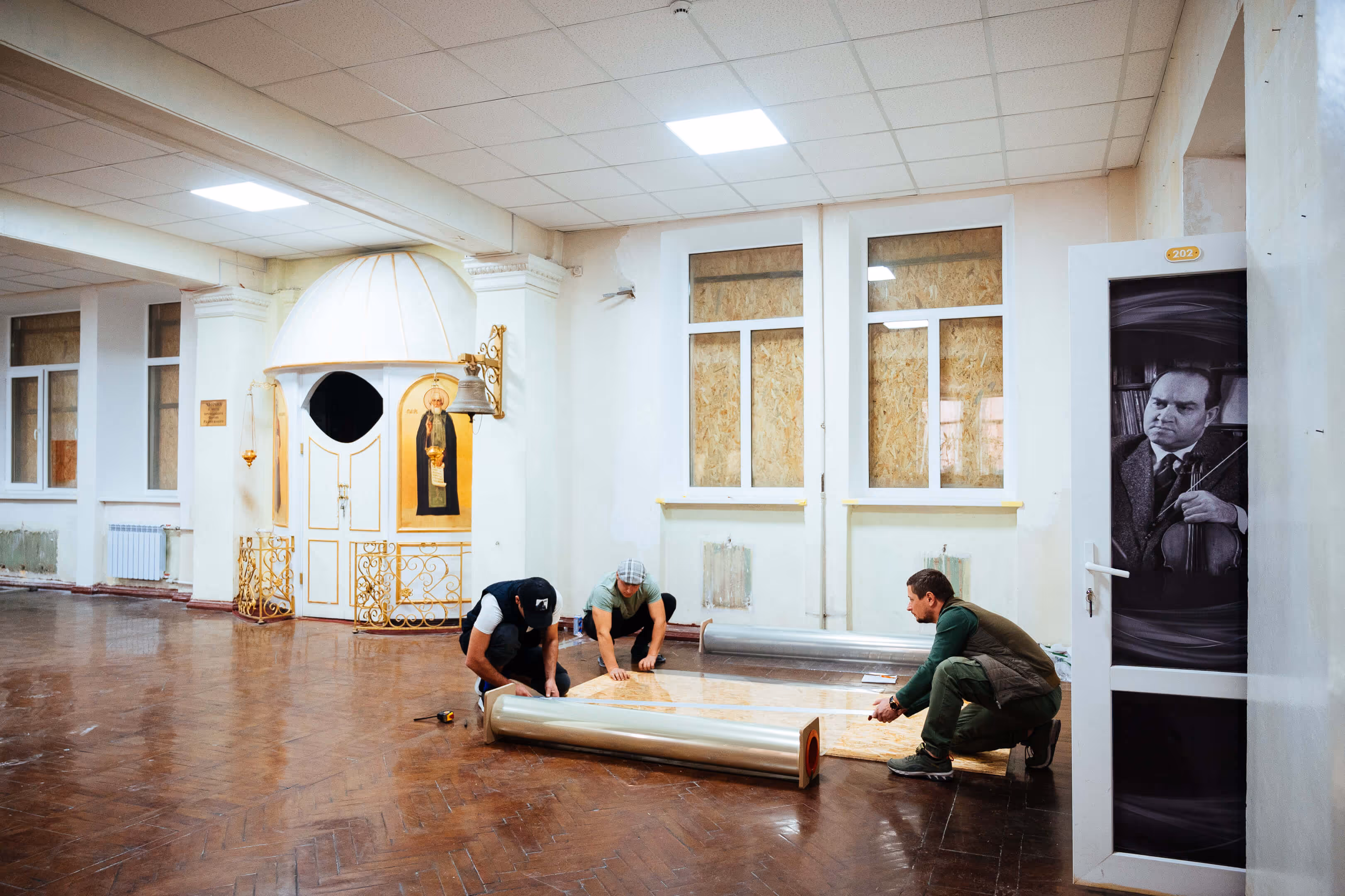 • Встановлення броньованої плівки та плит OSB у Будинку вчених.